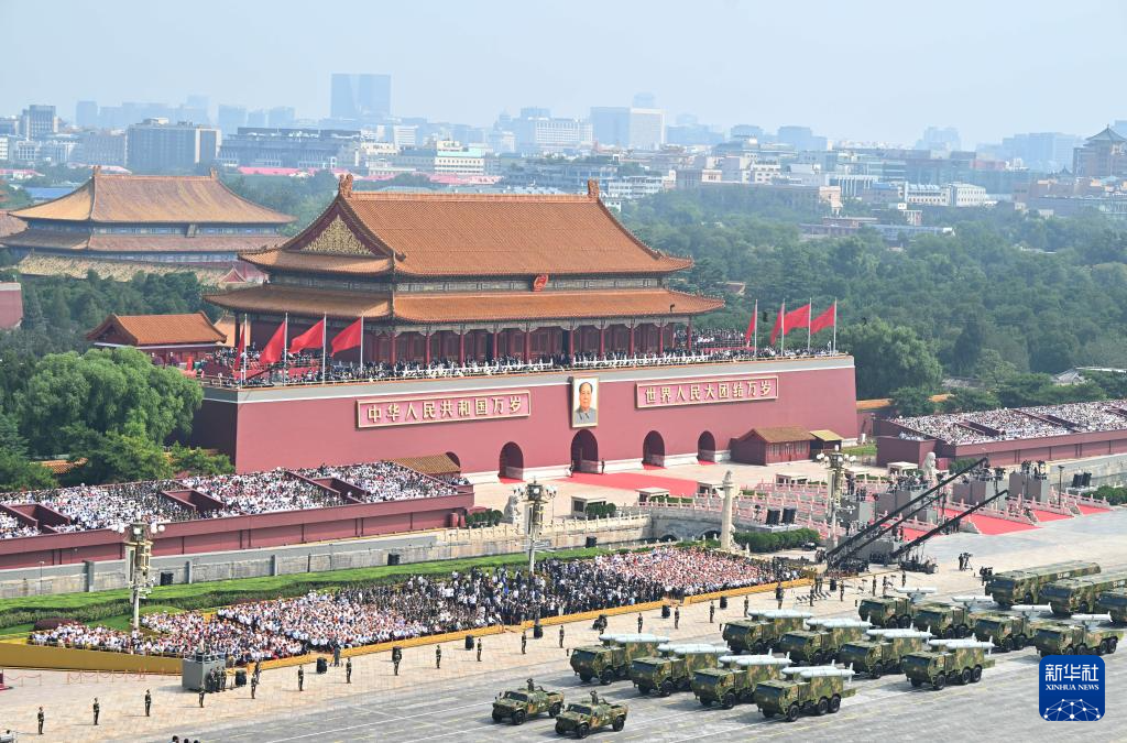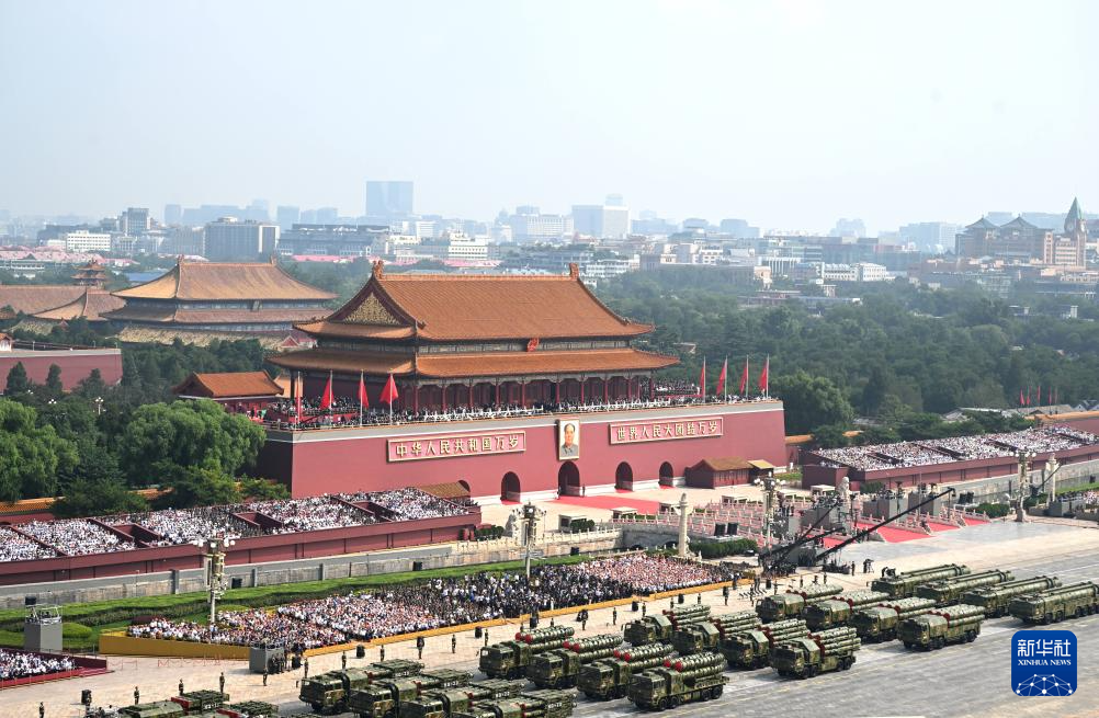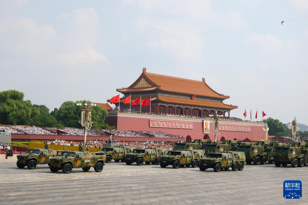 9月3日,纪念中国人民抗日战争暨世界反法西斯战争胜利80周年大会在北京隆重举行。这是远程火炮方队接受检阅。