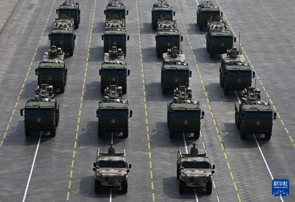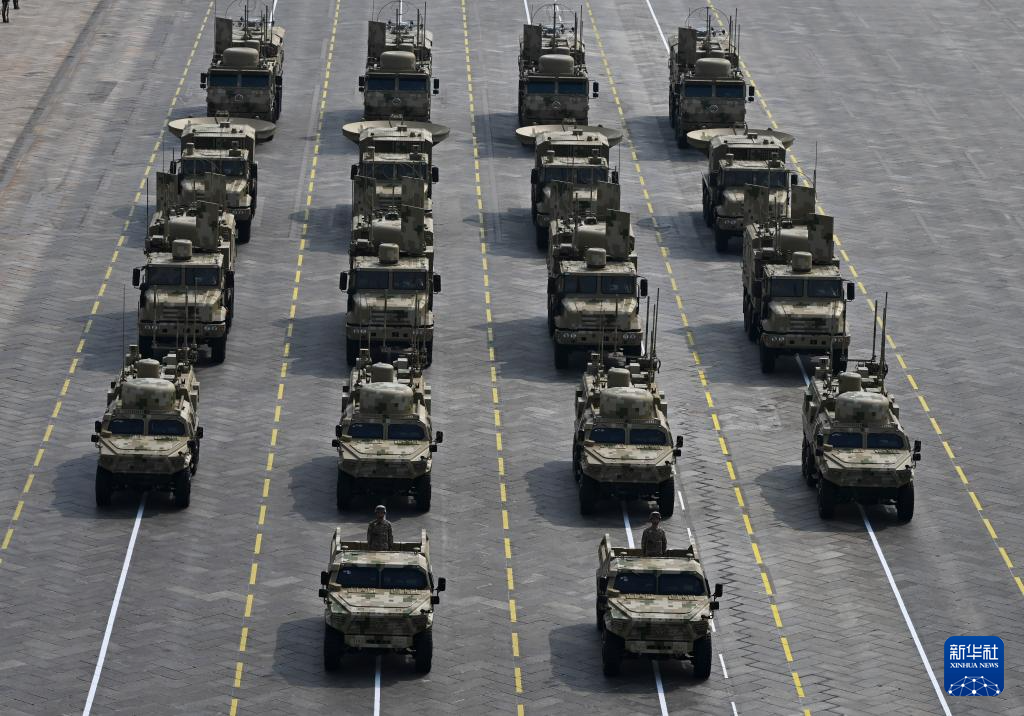 9月3日,纪念中国人民抗日战争暨世界反法西斯战争胜利80周年大会在北京隆重举行。这是信息支援方队接受检阅。