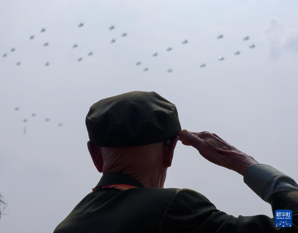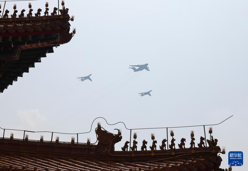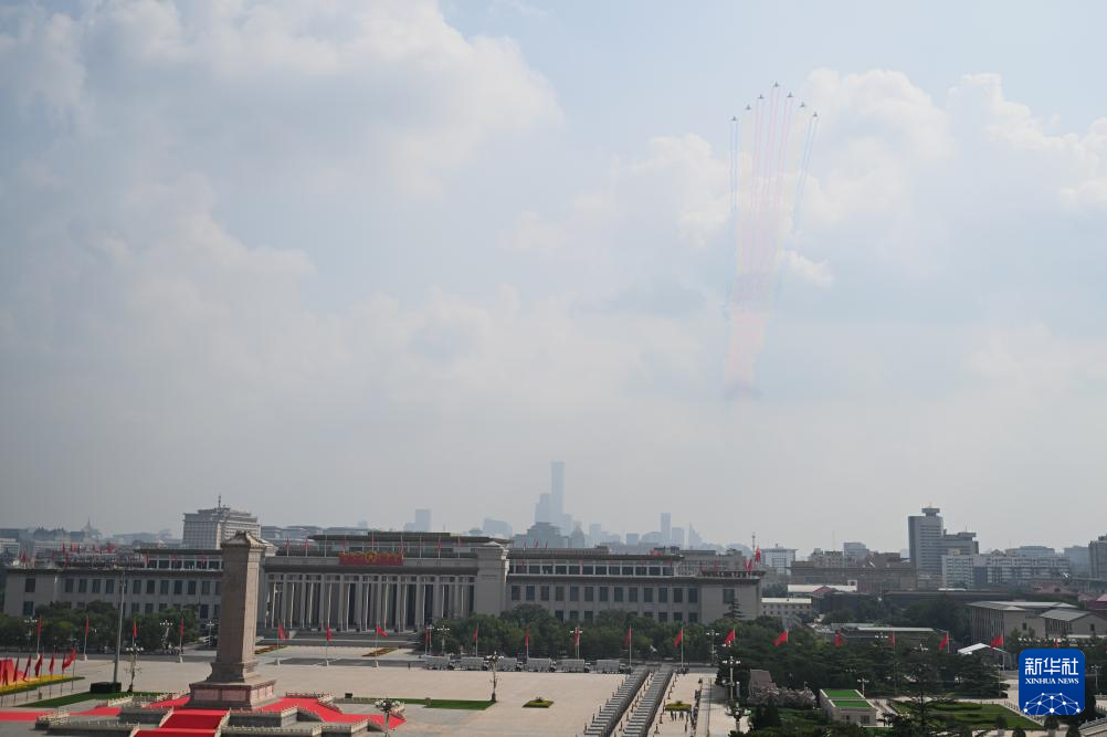 9月3日,纪念中国人民抗日战争暨世界反法西斯战争胜利80周年大会在北京隆重举行。这是空中梯队飞过天安门广场上空。