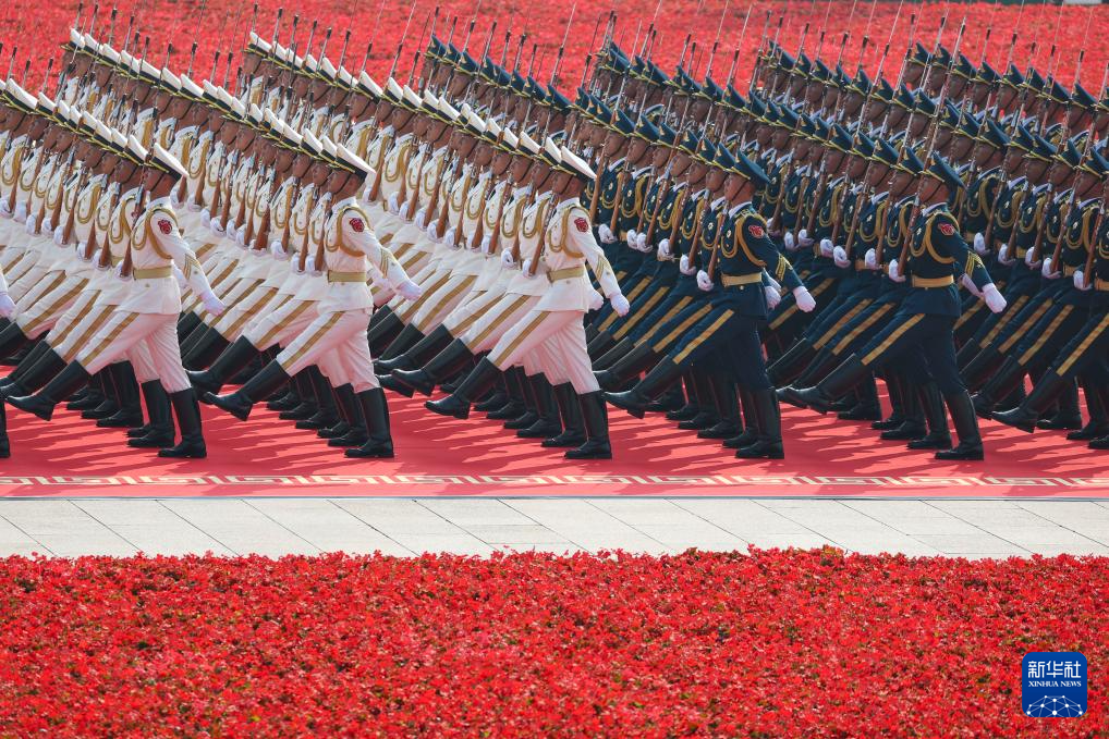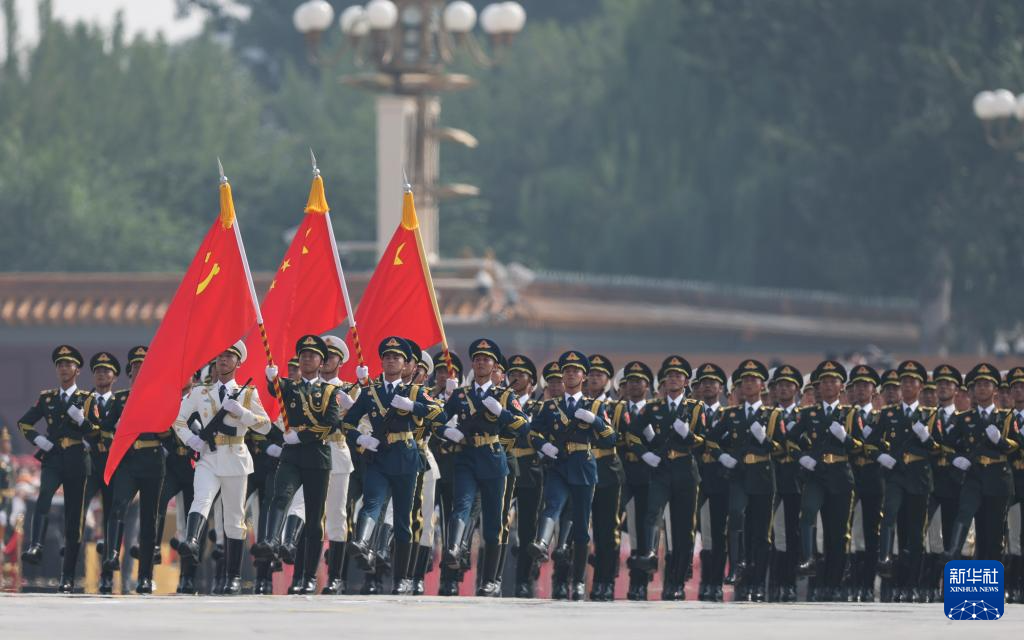 9月3日,纪念中国人民抗日战争暨世界反法西斯战争胜利80周年大会在北京隆重举行。这是国旗护卫队在行进中。
