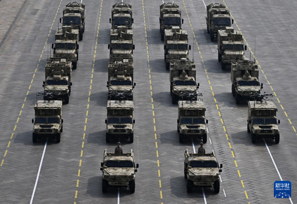 9月3日,纪念中国人民抗日战争暨世界反法西斯战争胜利80周年大会在北京隆重举行。这是陆上无人作战方队接受检阅。