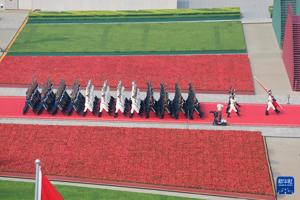 9月3日,纪念中国人民抗日战争暨世界反法西斯战争胜利80周年大会在北京隆重举行。这是国旗护卫队从人民英雄纪念碑基座出发,走向旗杆基座。