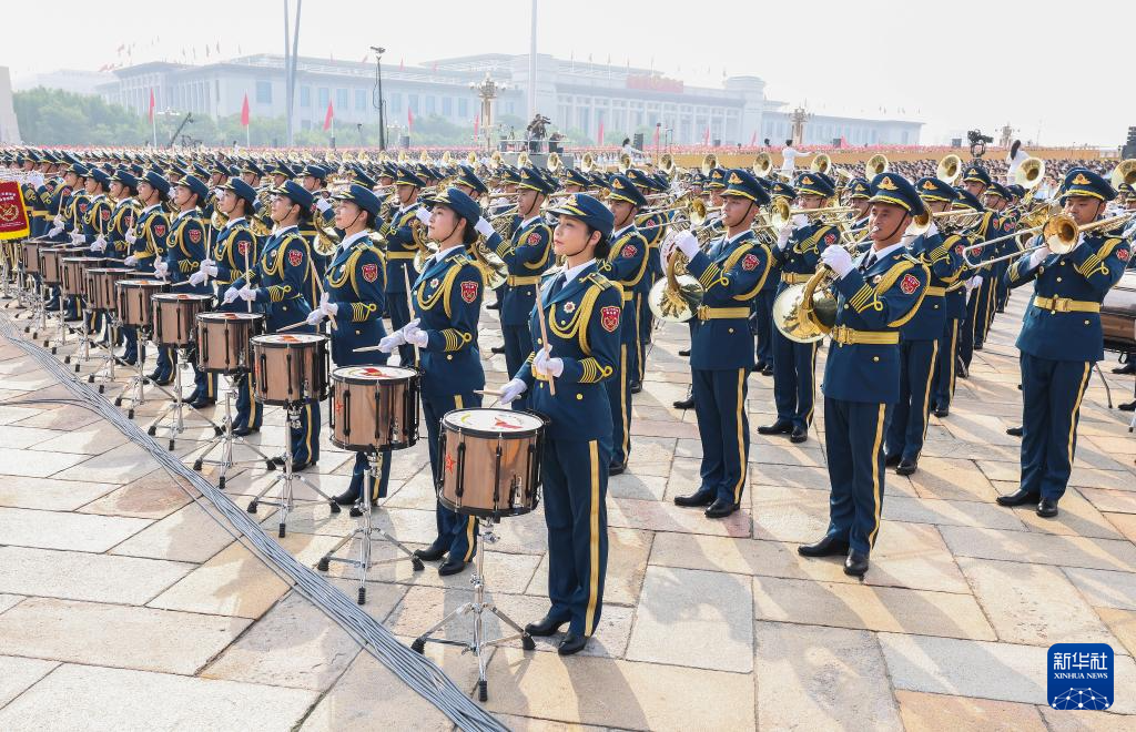 9月3日,纪念中国人民抗日战争暨世界反法西斯战争胜利80周年大会在北京天安门广场隆重举行。这是中国人民解放军联合军乐团在演奏。