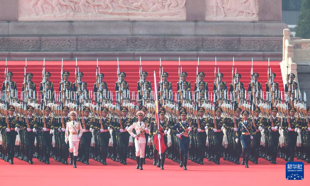 9月3日,纪念中国人民抗日战争暨世界反法西斯战争胜利80周年大会在北京隆重举行。这是国旗护卫队在行进中。