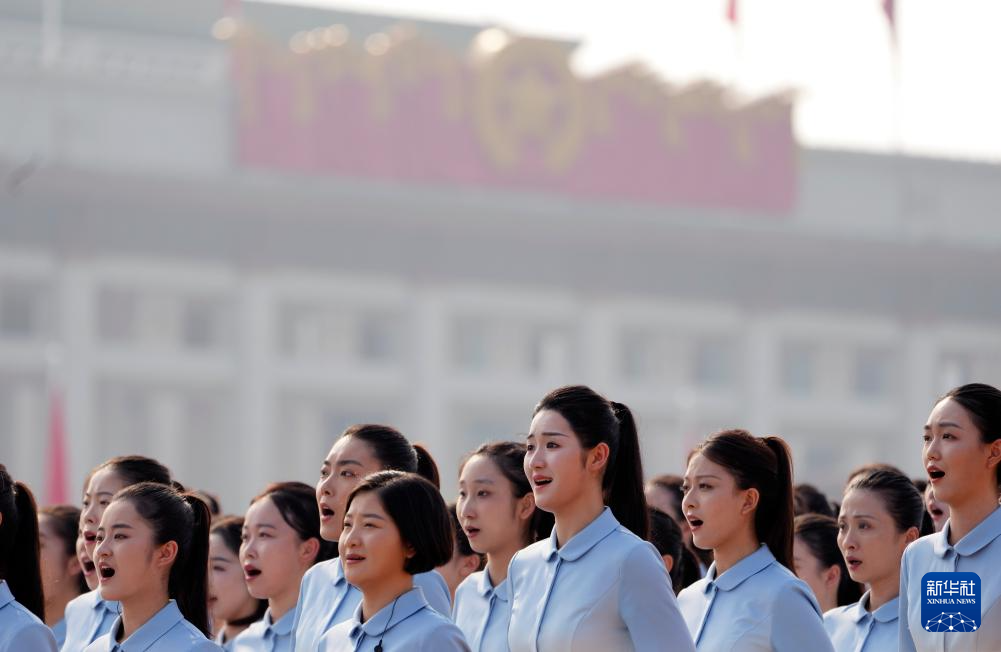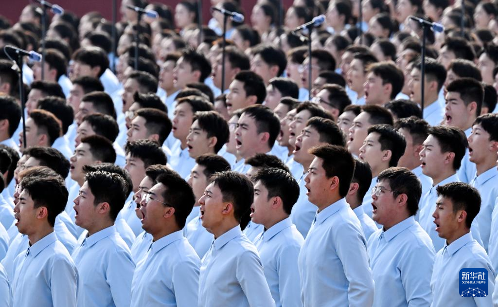 9月3日,纪念中国人民抗日战争暨世界反法西斯战争胜利80周年大会在北京天安门广场隆重举行。这是合唱团在演唱。