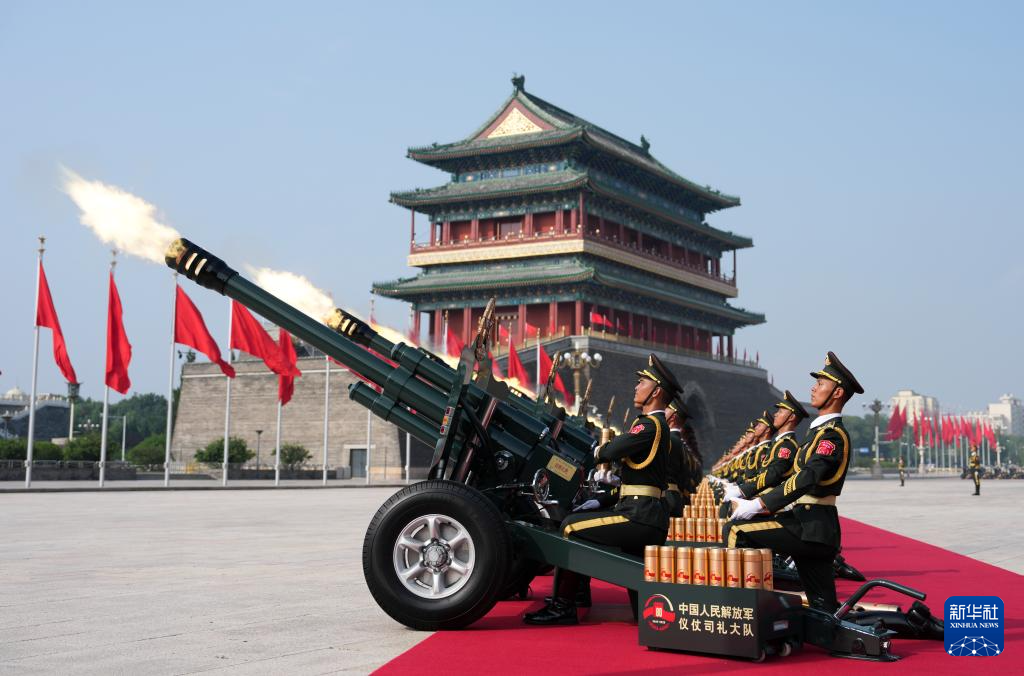 9月3日,纪念中国人民抗日战争暨世界反法西斯战争胜利80周年大会在北京隆重举行。这是礼炮在天安门广场鸣响。