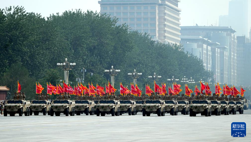 9月3日,纪念中国人民抗日战争暨世界反法西斯战争胜利80周年大会在北京隆重举行。这是战旗方队接受检阅。