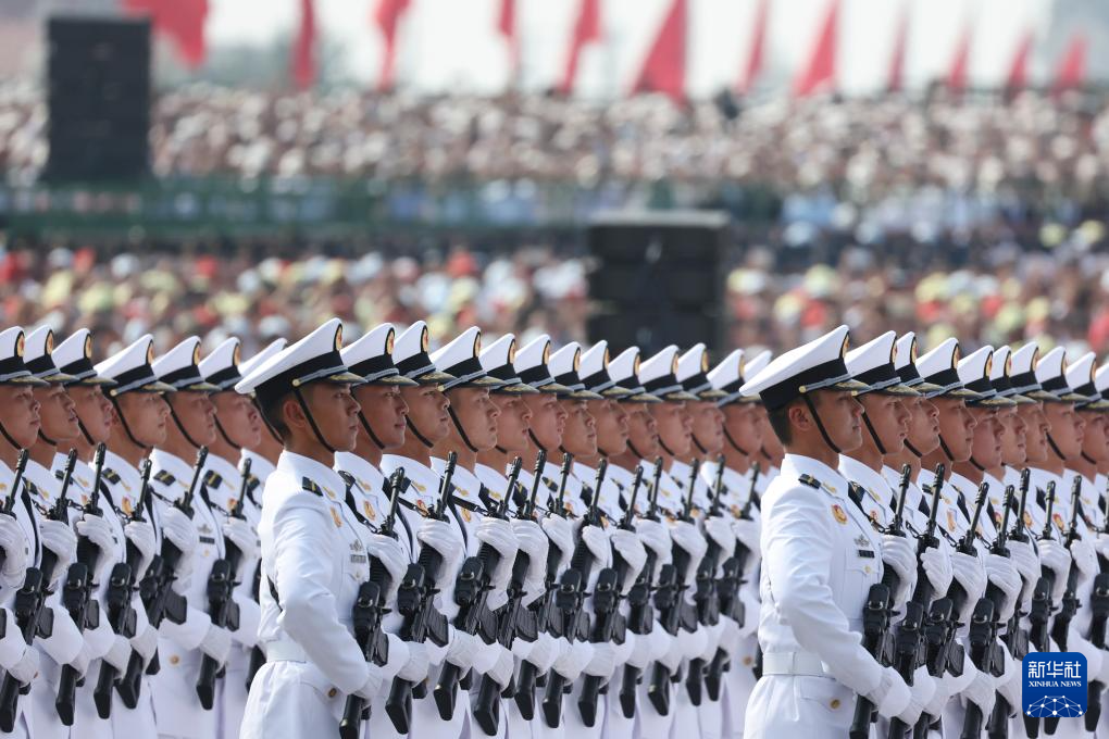 9月3日,纪念中国人民抗日战争暨世界反法西斯战争胜利80周年大会在北京隆重举行。这是海军方队走过天安门广场。