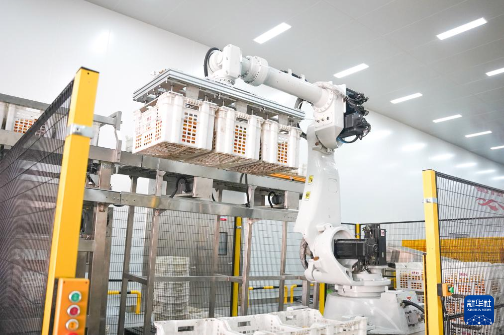 海南达川食品有限公司的全自动机械臂在投料作业(7月28日摄)。