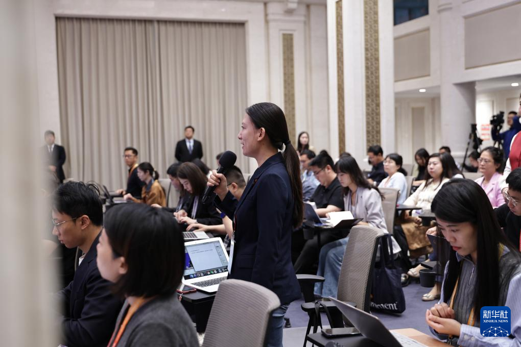 9月17日,国务院新闻办公室在北京举行“高质量完成‘十四五’规划”系列主题新闻发布会,国务院国资委主任张玉卓、国务院国资委副主任袁野、国务院国资委副主任李镇介绍砥砺奋进“十四五”,中央企业高质量发展情况,并答记者问。这是记者在现场提问。