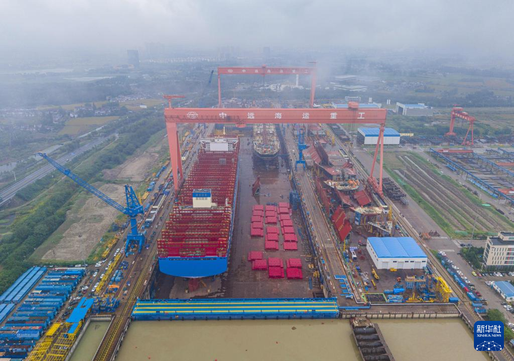 10月14日拍摄的位于江苏省江都经济开发区的扬州中远海运重工有限公司生产厂区(无人机照片)。