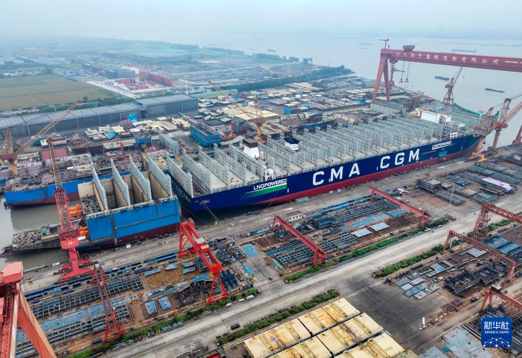 10月14日拍摄的位于江苏省泰兴市的江苏扬子鑫福造船有限公司生产区及船坞场景(无人机照片)。