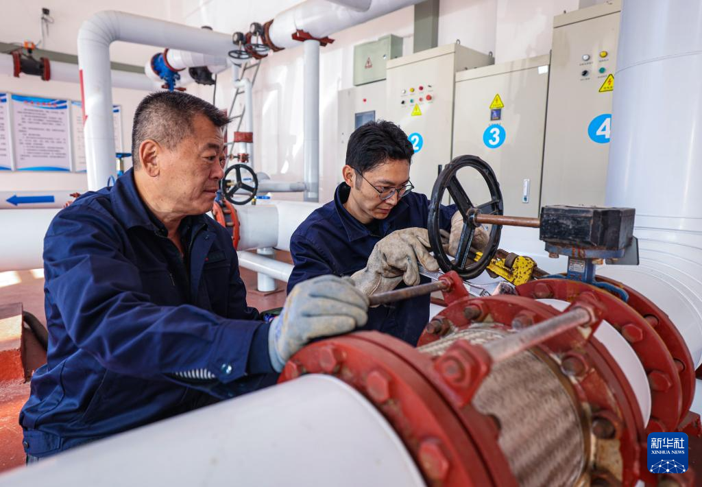 10月19日,在河南省焦作市博爱县九街社区,专业技术人员对集中供暖站的设备、管道开展全面检修维护。