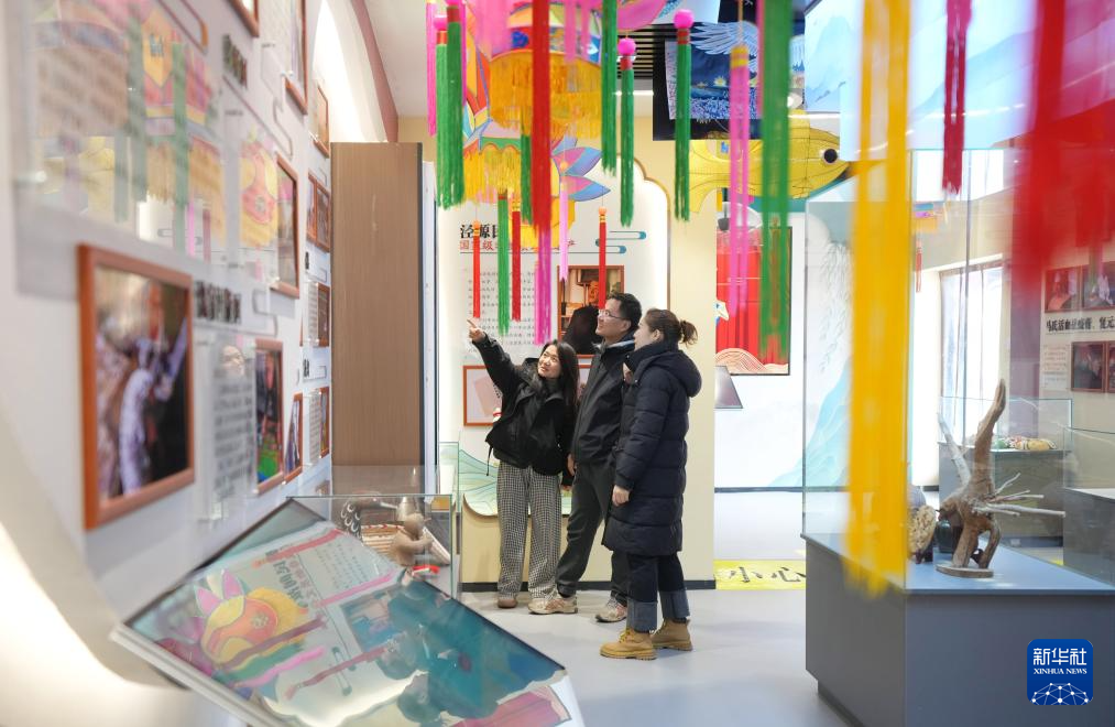 游客在六盘山红军长征旅游区非遗展示馆参观游览(10月26日摄)。