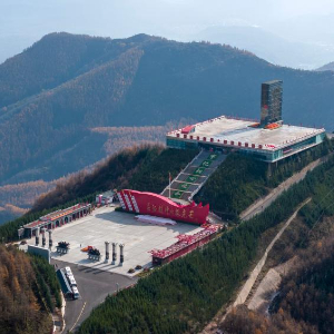 10月26日在宁夏固原市隆德县境内拍摄的六盘山红军长征旅游区(无人机照片)。
