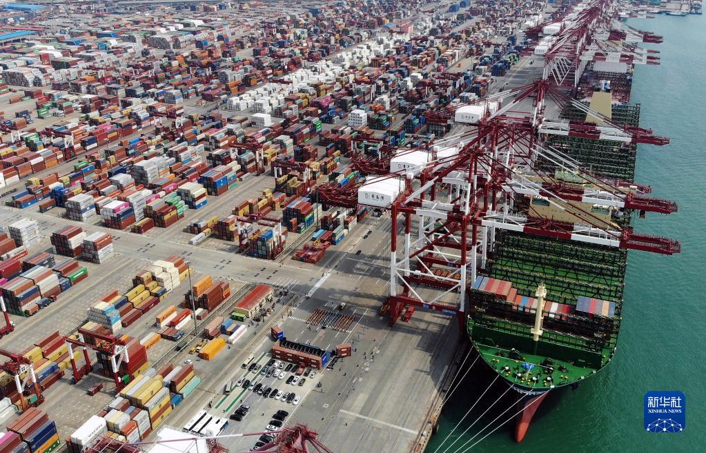 這是5月26日在海南洋浦經(jīng)濟(jì)開發(fā)區(qū)拍攝的洋浦國(guó)際集裝箱碼頭(無人機(jī)照片)。新華社記者 蒲曉旭 攝