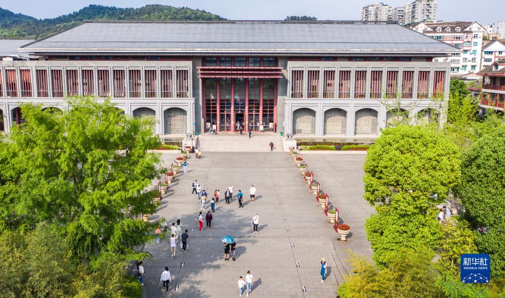 游客在遵義會(huì)議紀(jì)念館參觀(5月3日攝,無人機(jī)照片)。新華社記者 陶亮 攝