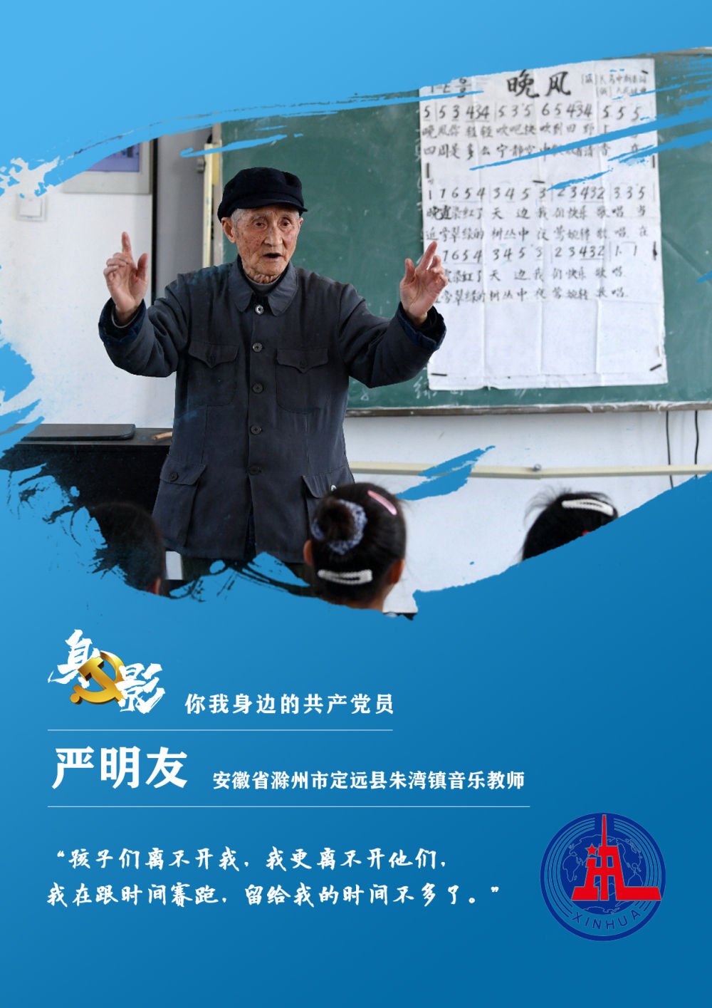 △嚴明友在安徽省定遠縣朱灣小學音樂教室里教孩子們唱歌(3月23日攝)。1953年,嚴明友回到家鄉安徽省定遠縣朱灣鎮,在多所農村學校任教。1990年,在鄉村教師崗位上耕耘近40年的嚴明友退休??紤]到鄉村中小學缺乏專職音樂老師,本應安享晚年的嚴明友,重返講臺,義務為多所鄉村學校學生上音樂課,一晃就是30多年。