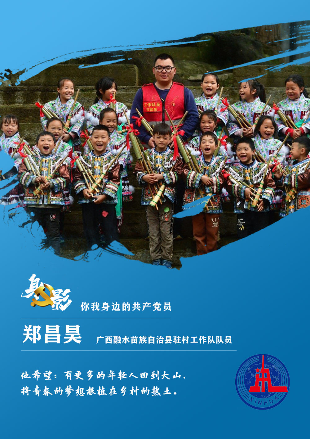 △在廣西融水苗族自治縣烏英苗寨,鄭昌昊和孩子們合影(4月8日攝)。今年26歲的鄭昌昊在柳州市魚峰區委宣傳部工作。2020年4月,他主動申請到柳州市融水苗族自治縣桿洞鄉黨鳩村擔任脫貧攻堅(鄉村振興)工作隊員,駐扎到該村最偏遠的烏英苗寨。一年來,無論刮風下雨或嚴寒酷暑,日夜堅守在偏遠艱苦地區教育脫貧一線。