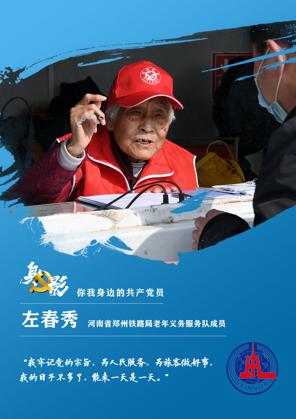 △左春秀(左)在河南省鄭州火車站西廣場志愿服務站里解答旅客的問題(3月9日攝)。今年88歲的左春秀是有著72年黨齡的老黨員,也是鄭州鐵路局的退休職工。1992年,退休后的她與同事成立了老年義務服務隊,在鄭州火車站廣場、候車廳、站臺為旅客提供幫助,一干就是29年。