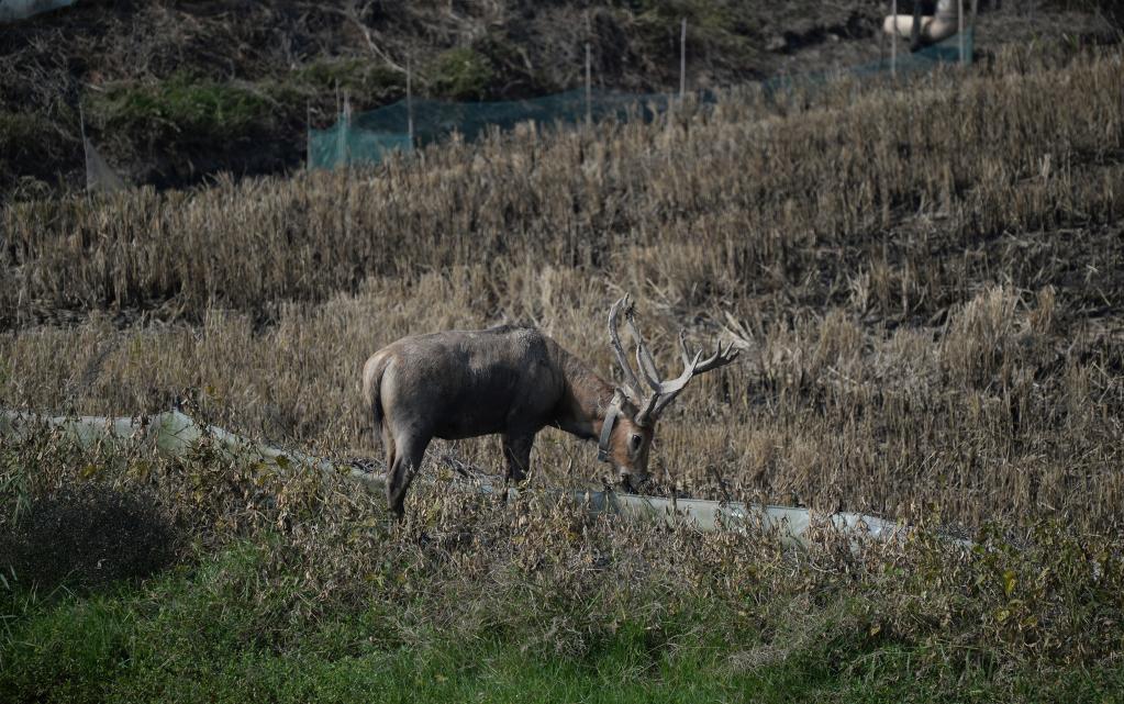沅江市森林病蟲害防治保護站站長熊立先說,曾有一頭麋鹿在當地幾個村莊停留了18個月,“胡吃海喝”后體重從約60斤長至300斤左右。當地農民為這頭麋鹿拍了不少“寫真”,畫面中,這頭麋鹿體型高大威猛,在農田里肆意踩踏、啃食。