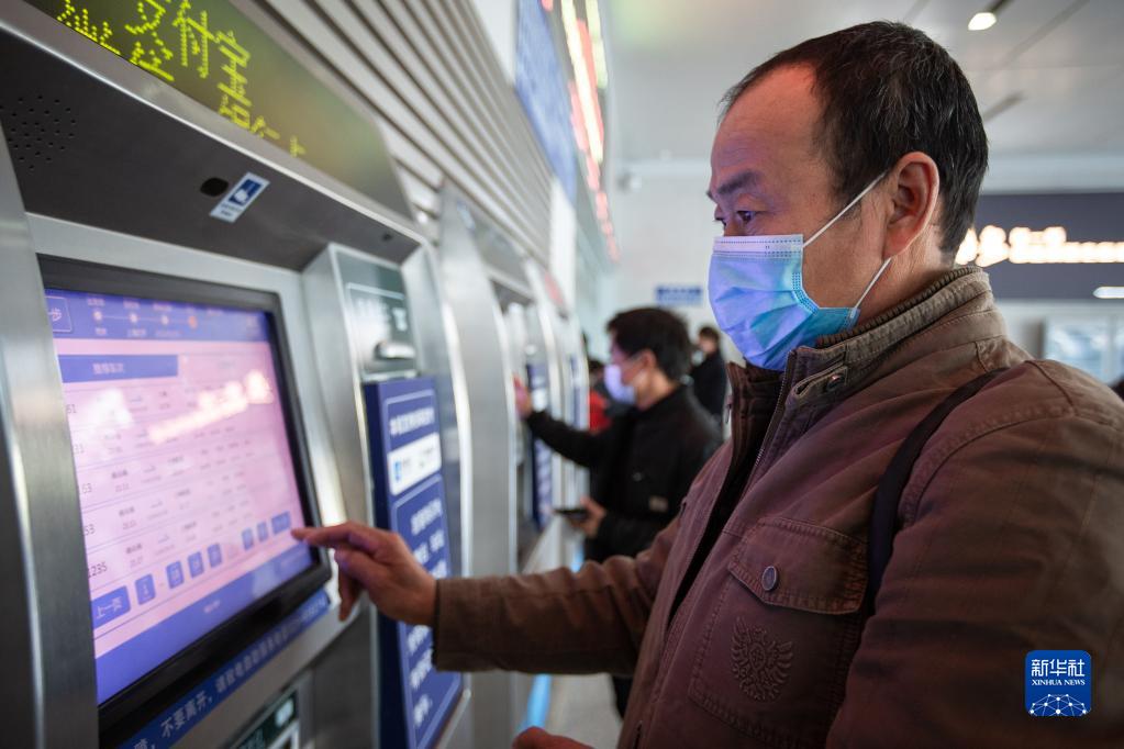 1月3日,旅客在南京火車站通過自助售票機購買火車票。當日,鐵路部門開始發售2022年春運火車票。新華社發(蘇陽 攝)