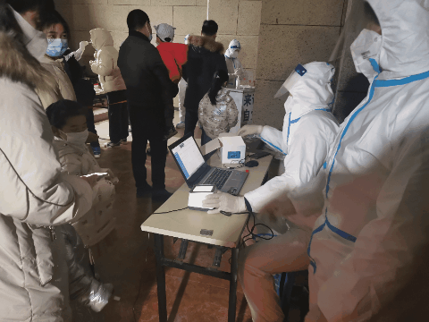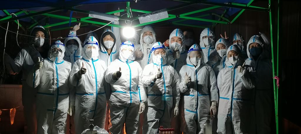 ↑馬文軒在寒夜里支援小區抗擊疫情。