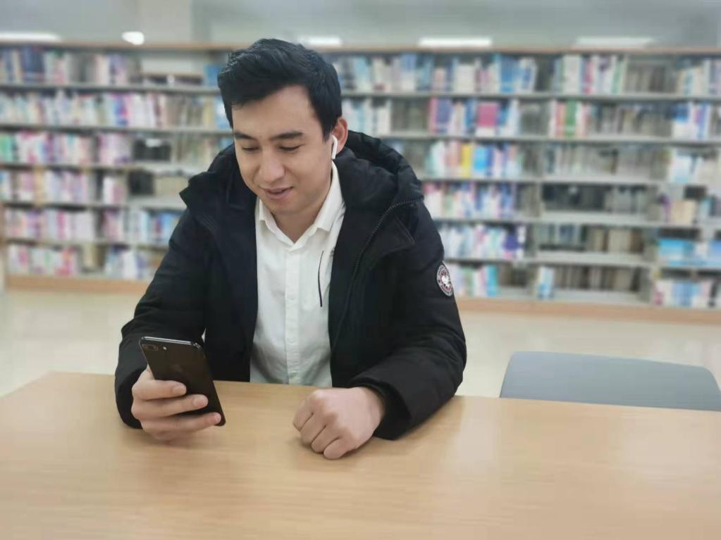 ↑馬文軒在與遠方的家人視頻連線報平安。