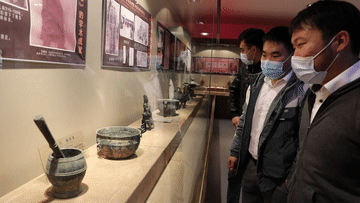 ↑馬文軒(左一)和同學參觀校內的醫史博物館。