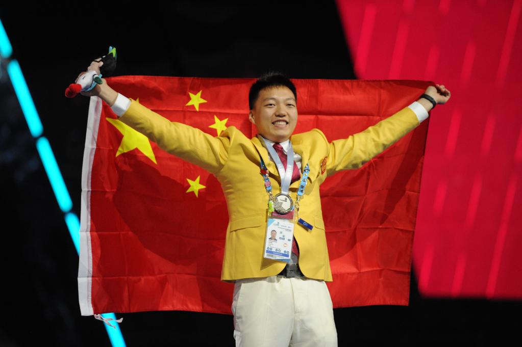 2019年8月,楊應(yīng)政代表中國隊(duì)參加第45屆世界技能大賽“管道與制暖”項(xiàng)目的比賽奪得銀牌。受訪者供圖