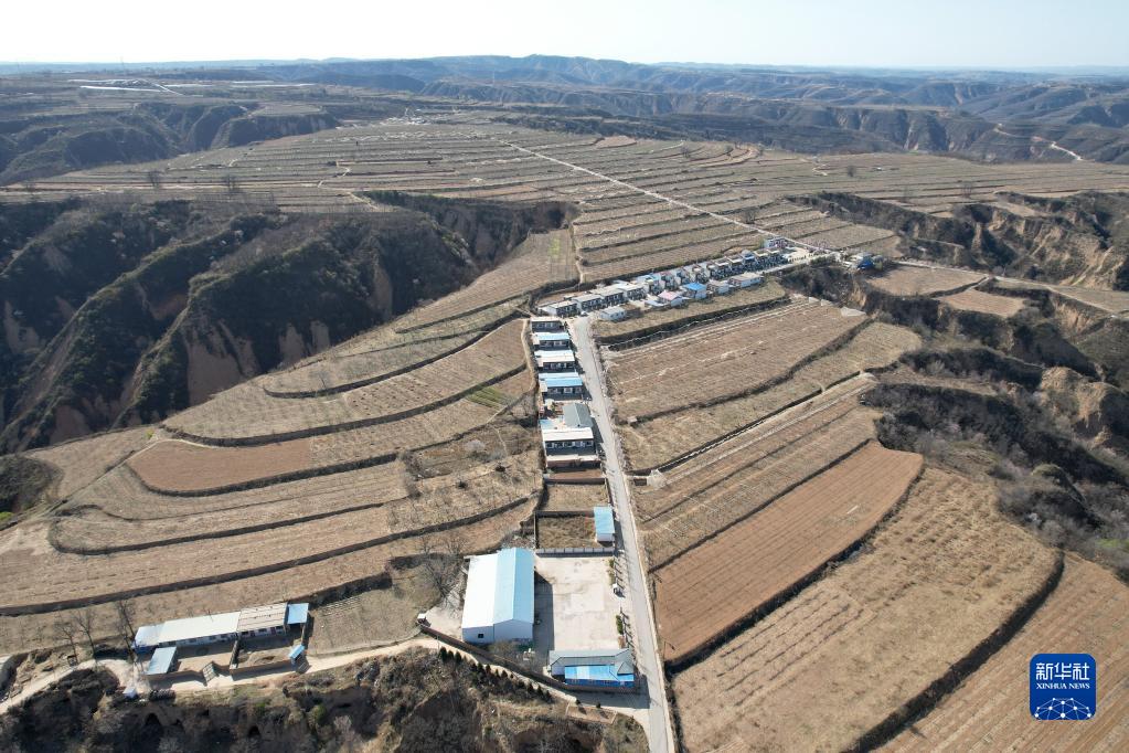 延安市宜川縣云巖鎮(zhèn)辛戶村發(fā)展的蘋果種植基地(4月2日攝,無人機照片)。新華社記者 邵瑞 攝