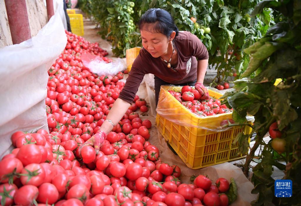 延安市安塞區(qū)化子坪鎮(zhèn)張岔村村民在大棚內采收西紅柿(3月29日攝)。新華社記者 邵瑞 攝