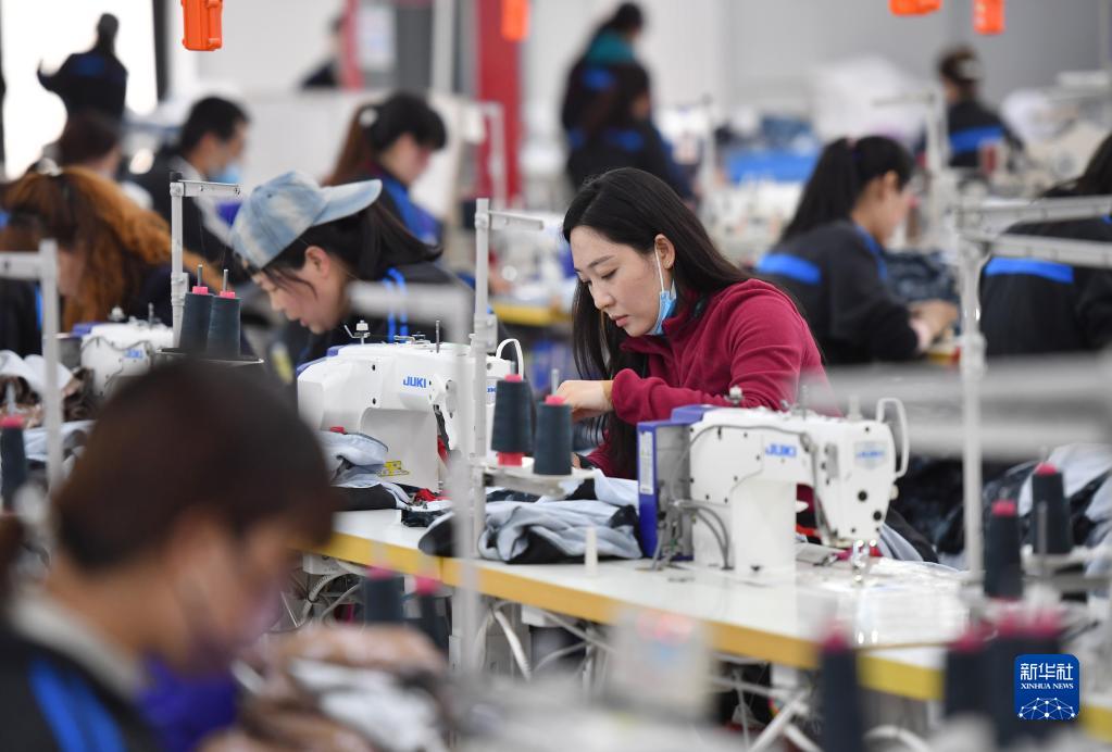 工人在延安市延川縣華延服裝公司車間內工作(3月31日攝)。新華社記者 邵瑞 攝