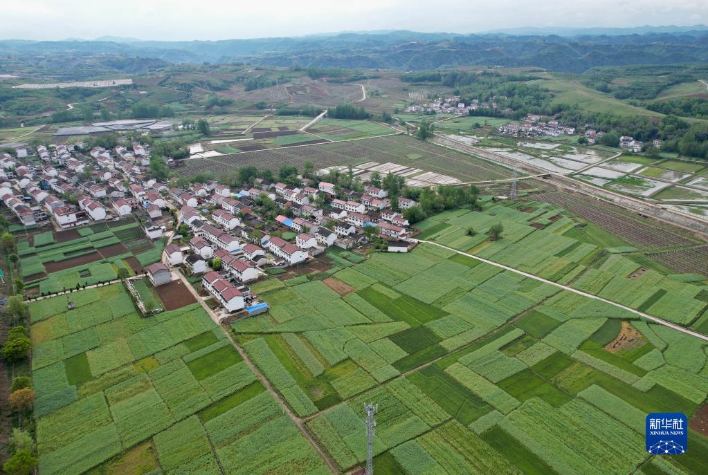 陜西洋縣龍亭鎮(zhèn)生態(tài)農(nóng)業(yè)園區(qū)一景(4月16日攝,無人機(jī)照片)。新華社記者 邵瑞 攝