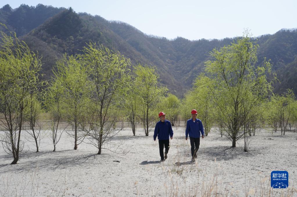 金堆城鉬業(yè)集團(tuán)有限公司工作人員在經(jīng)過生態(tài)治理后的木子溝尾礦庫內(nèi)巡查(4月7日攝)。新華社記者 邵瑞 攝