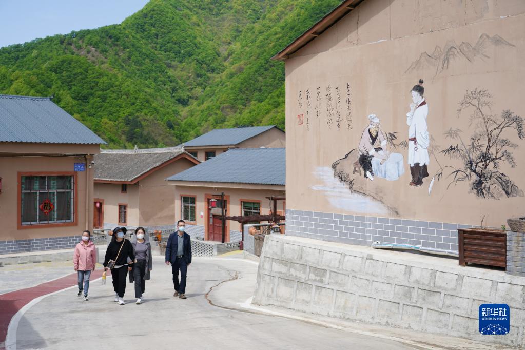 游客在陜西柞水縣下梁鎮(zhèn)老庵寺村游覽(4月21日攝)。新華社記者 邵瑞 攝