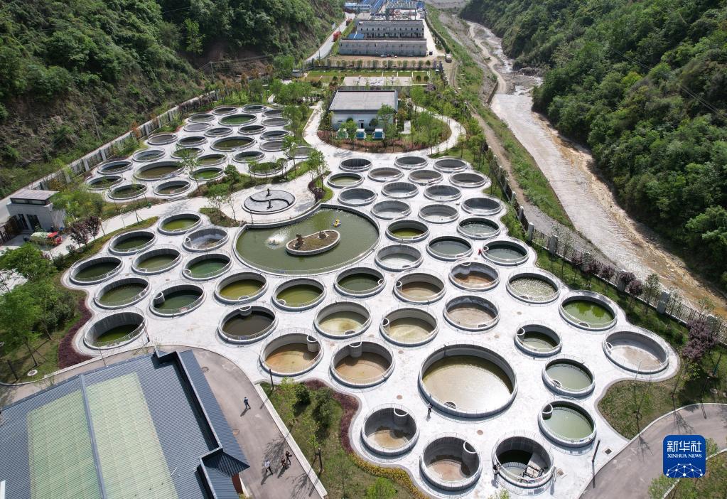 “引漢濟(jì)渭”黃金峽水利樞紐工程配套建設(shè)的魚類增殖放流站(4月19日攝,無人機(jī)照片)。新華社記者 邵瑞 攝