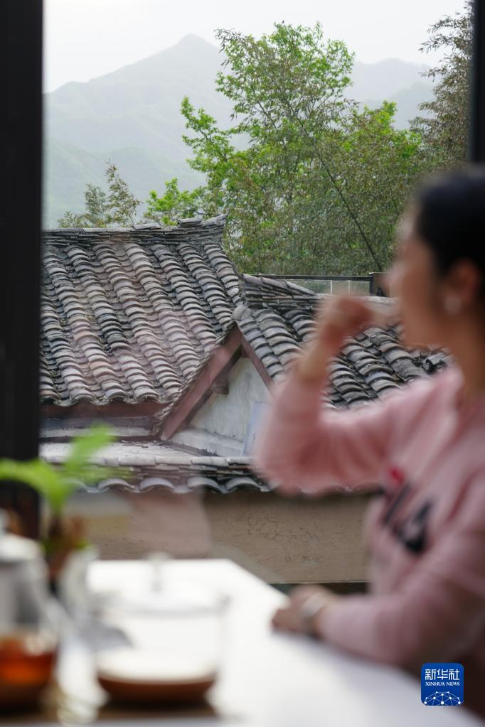 游客在陜西佛坪縣西岔河鎮(zhèn)銀廠溝村一家民宿內(nèi)喝茶(4月19日攝)。新華社記者 邵瑞 攝