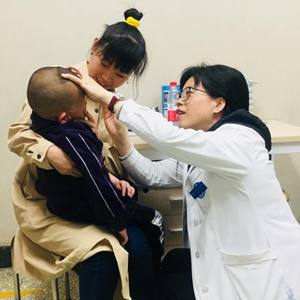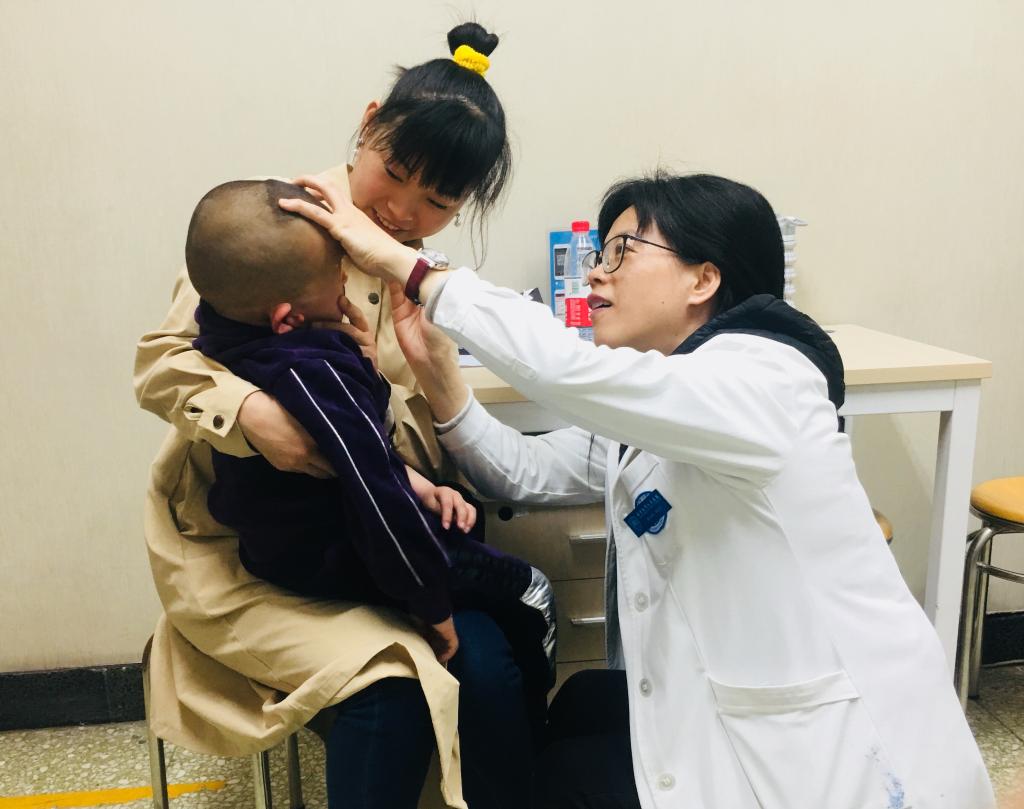 鮑永珍教授為小兒患者進(jìn)行眼病診療。(受訪者供圖)