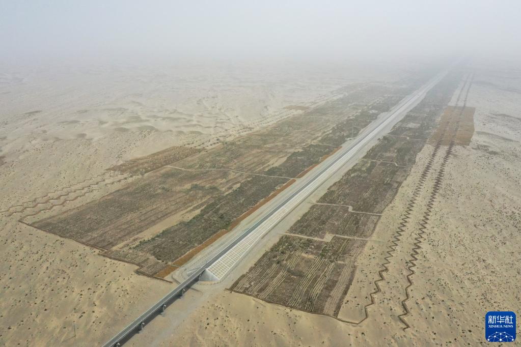 采用裝配式橋墩,既解決沙漠缺水難題,也減輕風(fēng)沙對(duì)施工影響;將綠色環(huán)保理念貫穿到鐵路建設(shè)全過程,實(shí)現(xiàn)風(fēng)沙防護(hù)工程與鐵路建設(shè)同步推進(jìn),讓綿延300公里的“綠色走廊”成為防風(fēng)治沙天然屏障……