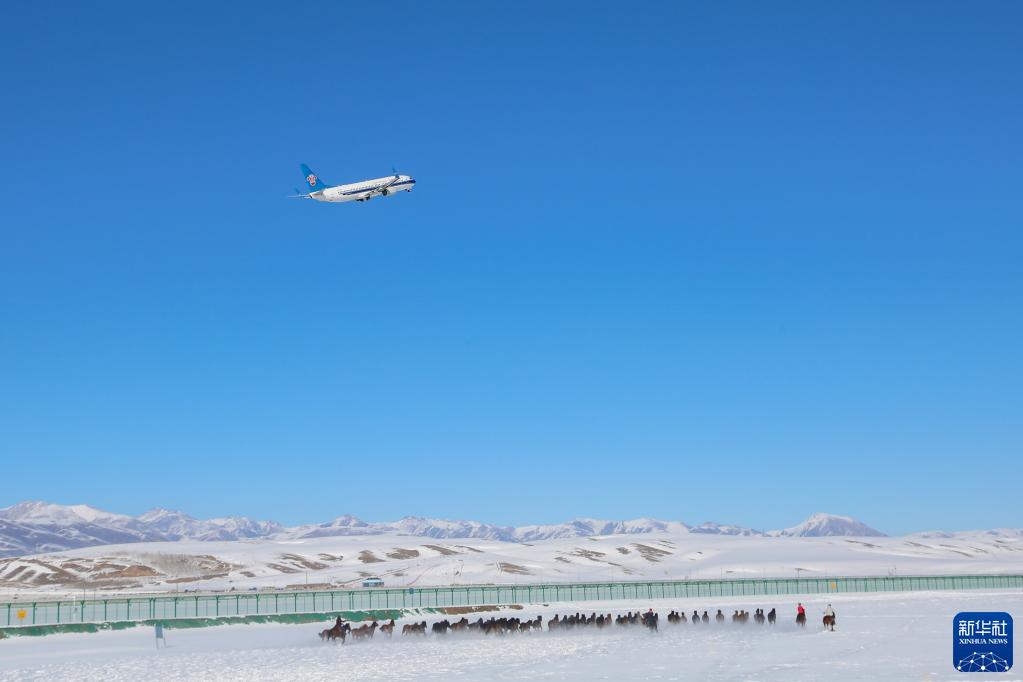 昭蘇—烏魯木齊航班從昭蘇天馬機(jī)場(chǎng)起飛(1月28日攝)。新華社發(fā)(李文武 攝)