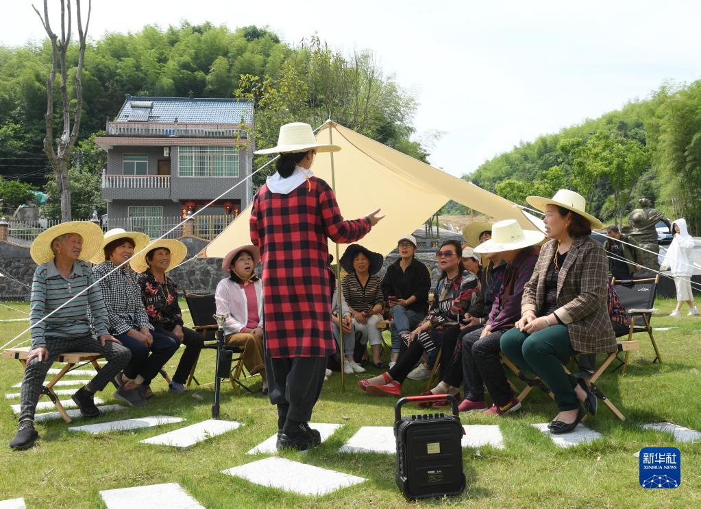 5月17日,在浙江省建德市航川村,“文藝村長”周霞(中)指導(dǎo)村民們進行聲樂練習(xí)。該市在各鎮(zhèn)街推行“文藝村長”工作制度,將有意愿的文藝工作者分派到農(nóng)村開展教學(xué)。新華社記者 翁忻旸 攝