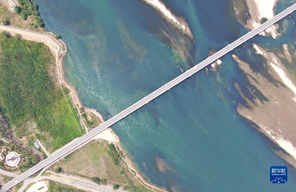 這是5月17日在河南省三門(mén)峽市拍攝的黃河廊道一景(無(wú)人機(jī)照片)。新華社記者 郝源 攝