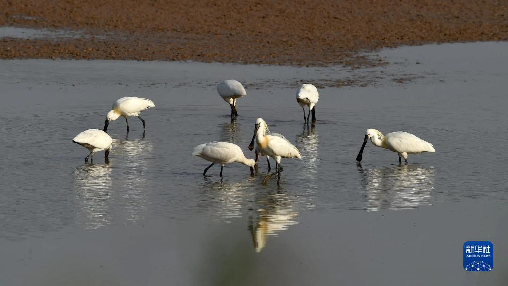 這是4月10日在河南黃河濕地國(guó)家級(jí)自然保護(hù)區(qū)孟津段拍攝的白琵鷺。新華社發(fā)(馬朝紅 攝)