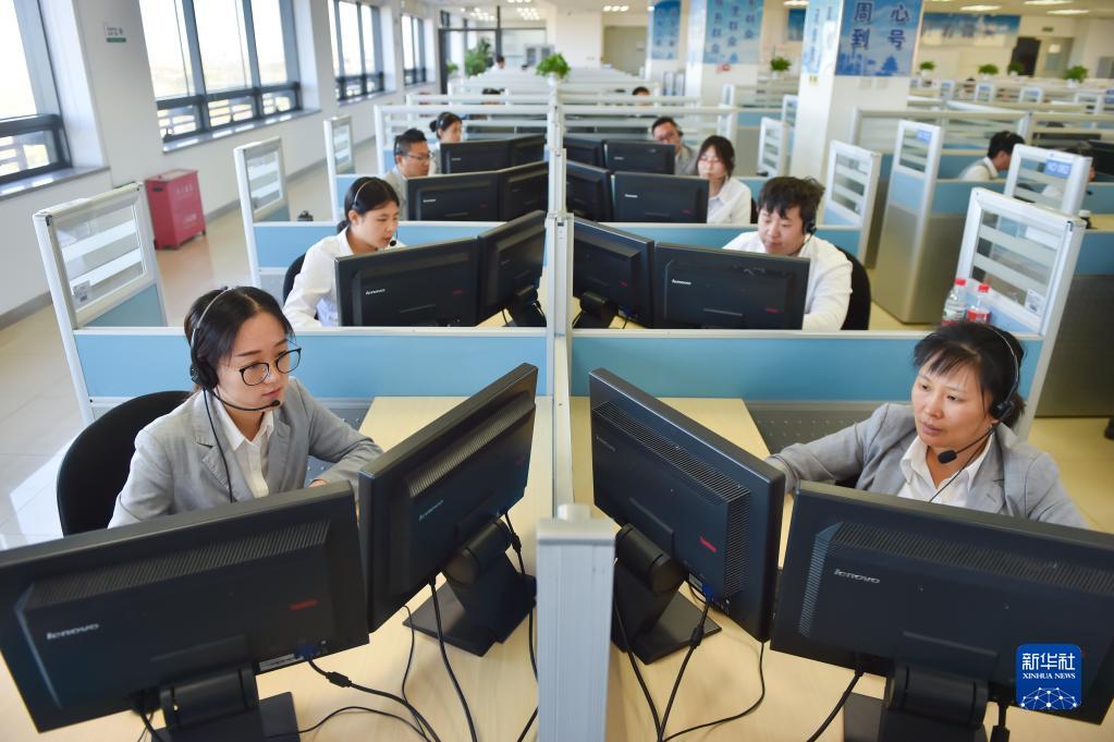 在位于北京經濟技術開發區的12345市民熱線話務大廳,工作人員接聽熱線電話(2019年11月13日攝)。新華社記者 彭子洋 攝
