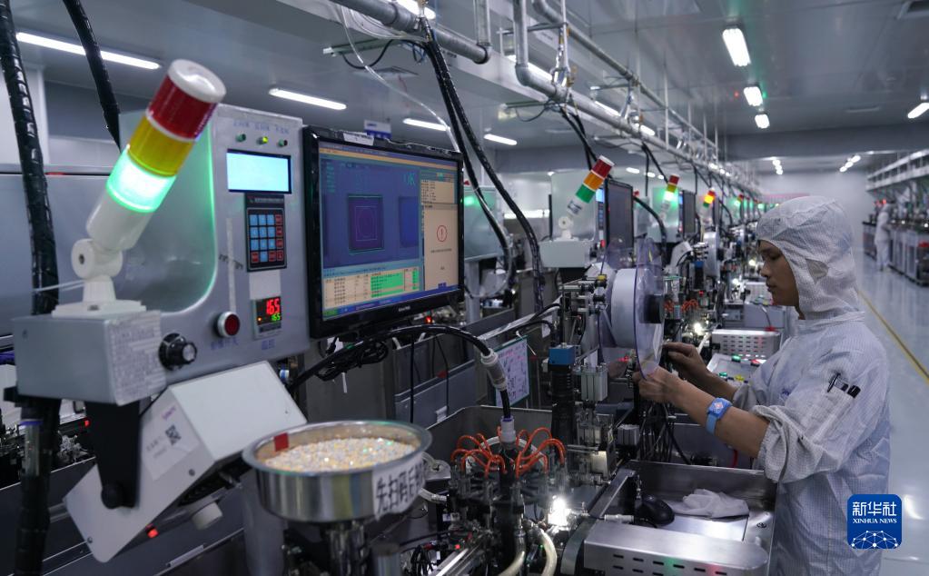 江西兆馳光元科技股份有限公司的工作人員在車間進行LED封裝編帶工序(2021年6月25日攝)。新華社記者 胡晨歡 攝