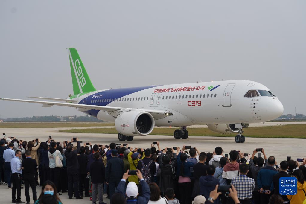 在2020南昌飛行大會上,國產大飛機C919亮相江西南昌瑤湖機場并進行飛行表演(2020年10月31日攝)。新華社記者 周密 攝