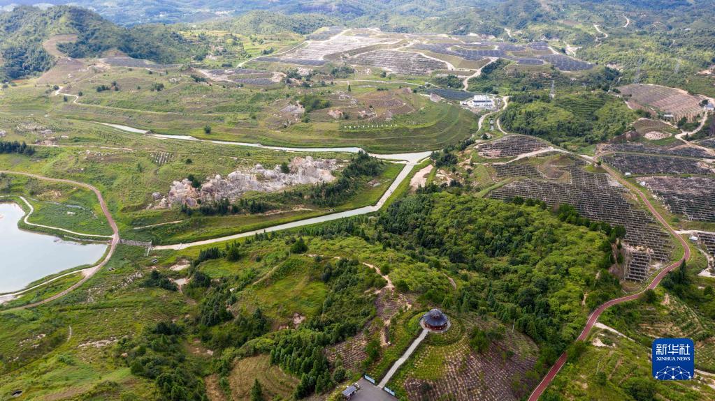 這是位于江西省尋烏縣文峰鄉上甲村附近的生態修復區(2020年7月19日攝,無人機照片)。從前這里是大面積的廢棄稀土礦山。新華社記者 彭昭之 攝