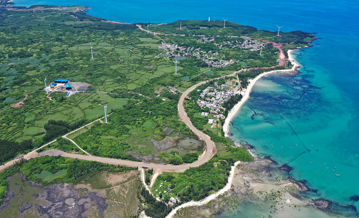 海南環島旅游公路儋州段施工現場(無人機照片)。新華社記者 郭程 攝