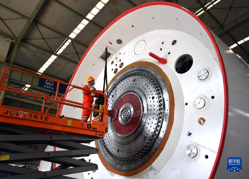 工人在位于河南省鄭州市的中鐵工程裝備集團盾構機總裝車間作業(2020年3月18日攝)。新華社記者 李嘉南 攝